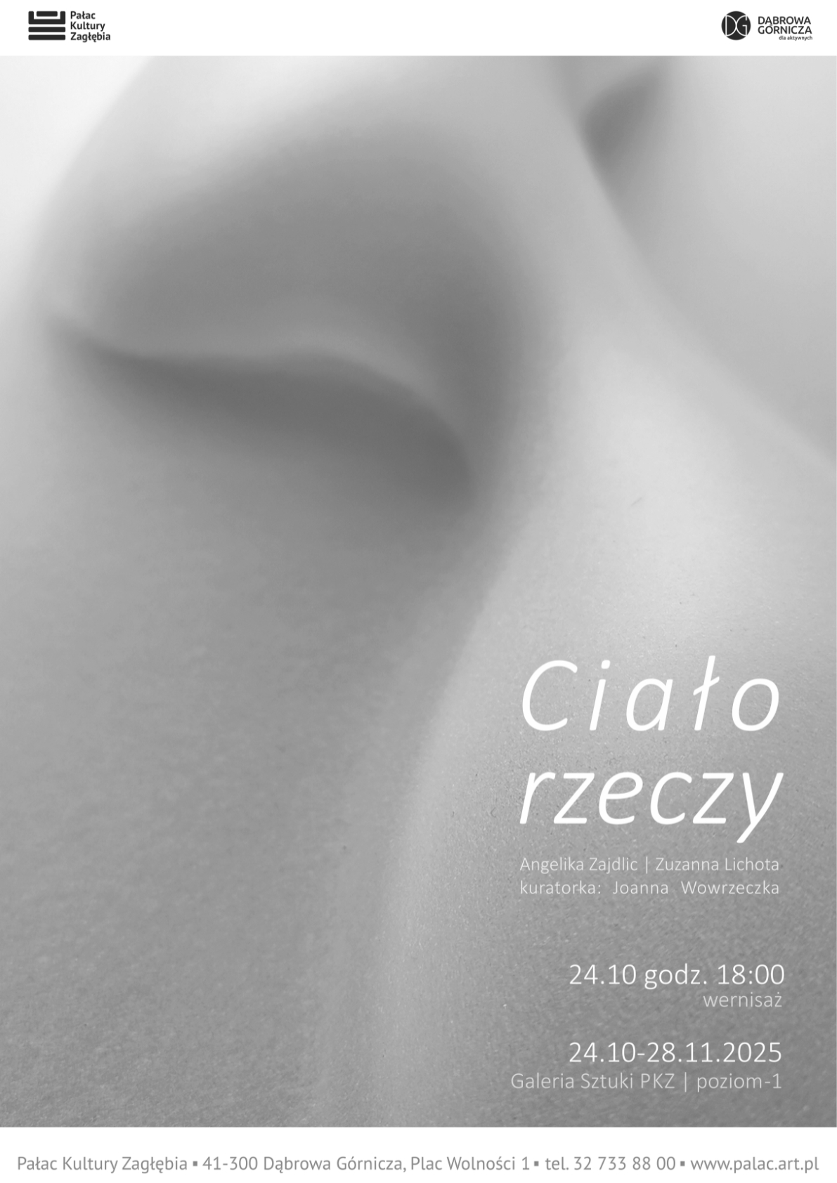 Od 24 października do 28 listopada br. Galeria Sztuki Pałacu Kultury Zagłębia w Dąbrowie Górniczej zaprasza na wystawę Ciało rzeczy Angelika Zajdlic, Zuzanna Lichota.