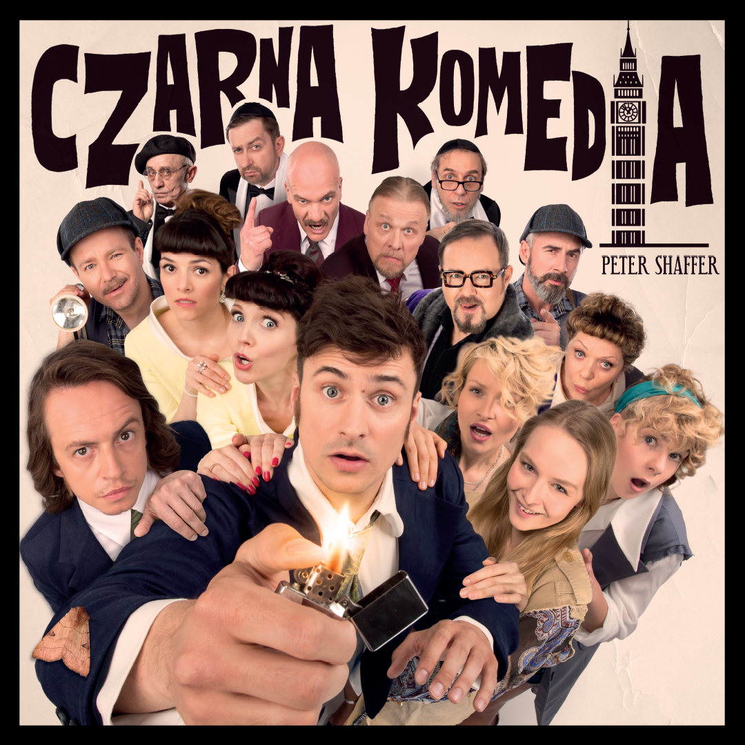 “Czarna komedia” autorstwa Petera Shaffera to jedna z najczęściej grywanych komedii na świecie. Fenomen tego przedstawienia polega m.in. na odwróconej logice: kiedy na scenie gaśnie światło, aktorzy poruszają się swobodnie jakby w ich świecie panowała jasność, kiedy jednak na scenie zapalają się reflektory, wszyscy bohaterowie „wpadają w ciemność” i poruszają się po omacku, stąd komiczność sytuacji i całe serie pomyłek.