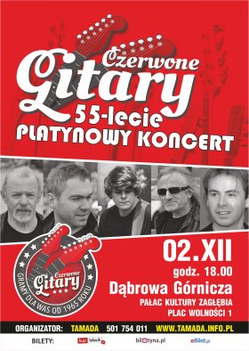 Legenda polskiej muzyki rozrywkowej - Czerwone Gitary zapraszają na swój Platynowy Koncert. Będzie to podsumowanie 55 letniej działalności zespołu. W programie, usłyszymy największe przeboje, które znają i śpiewają wszystkie pokolenia. Nie zabraknie też nowych propozycji oraz historii zespołu w przekazie multimedialnym. To trzeba zobaczyć na żywo!