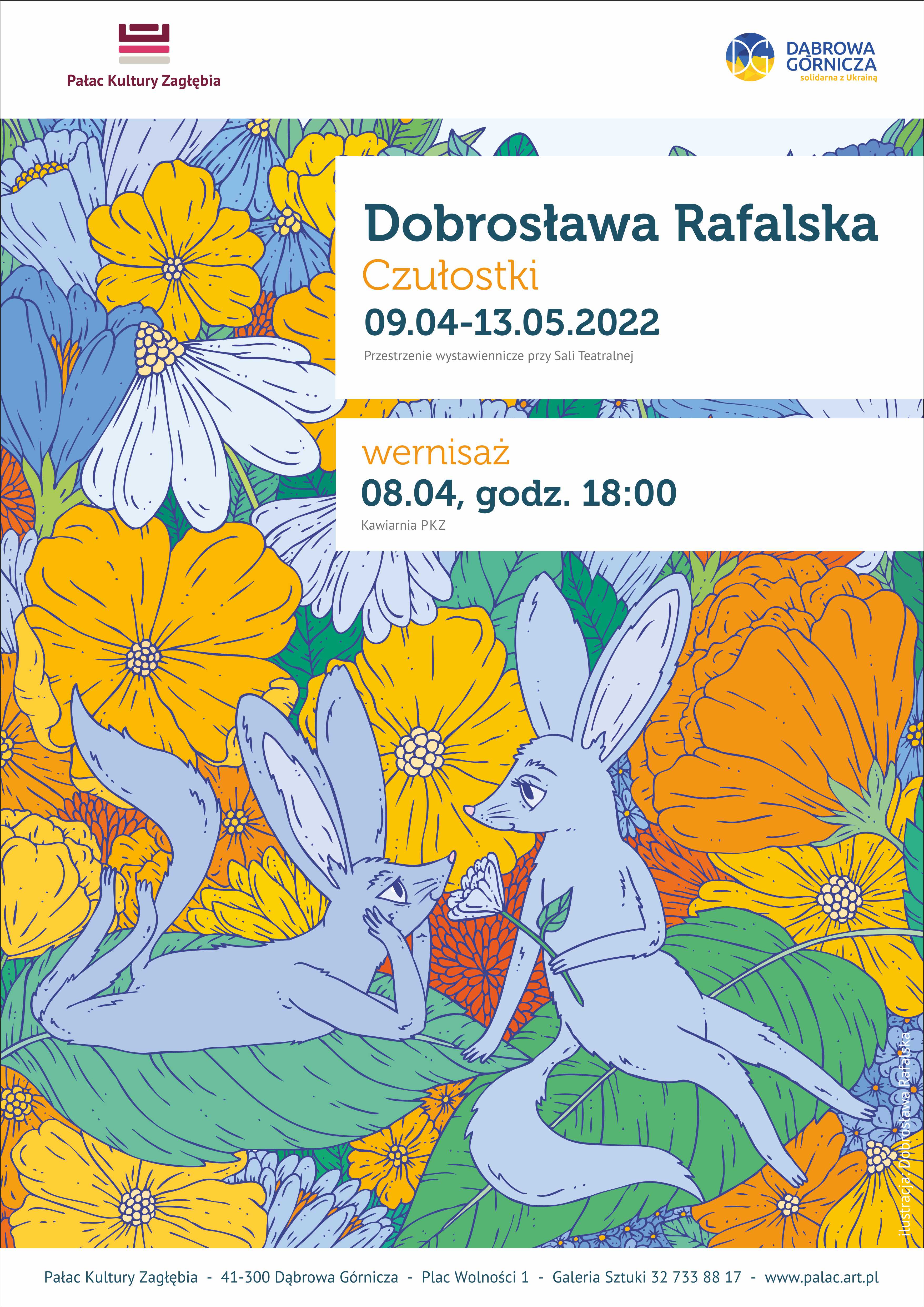 Czułostki – inaczej grzeczności, komplementy, laurki, miłe gesty, czuły zwrot – niedoceniane drobiazgi, które sprawiają, że nasza codzienność nabiera kolorów i sensu. "Czułostki" to także tytuł wystawy prac Dobrosławy Rafalskiej – historii o potrzebie czułości opowiedzianej bez słów i z poczuciem humoru, którą będzie można podziwiać od 9 kwietnia do 13 maja w Holu Głównym Pałacu Kultury Zagłębia.