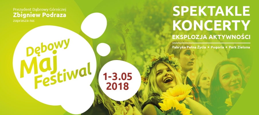 Tegoroczna dąbrowska majówka, czyli Dębowy Maj Festiwal odbędzie się pod hasłem Eksplozja aktywności i kultury! Oprócz licznych wydarzeń sportowych na terenie całego miasta, zorganizowana zostanie Strefa kultury w Fabryce Pełnej Życia. To tam odbędą się najważniejsze kulturalne atrakcje, których nie zabraknie podczas 3 dni wypoczynku w dębowym mieście.