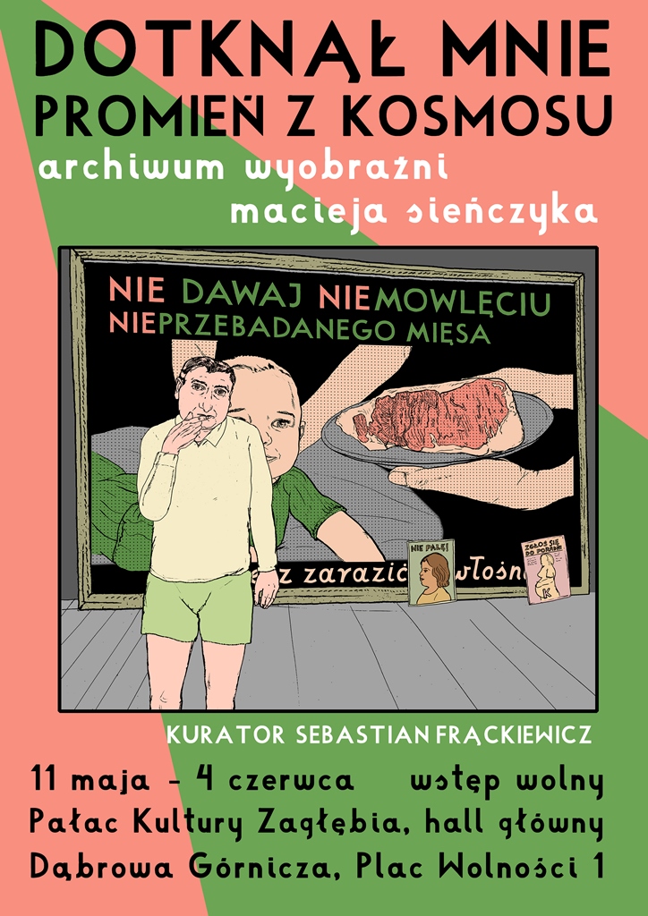 Dotknął mnie promień z kosmosu - archiwum wyobraźni Macieja Sieńczyka to wystawa ilustracji oraz eksponatów z kolekcji Macieja Sieńczyka przygotowana specjalnie z okazji Festiwalu Literackiego Oblicza. Twórczość rysownika będzie można podziwiać w przestrzeniach ekspozycyjnych Sali Teatralnej w Holu Głównym Pałacu Kultury Zagłębia (od strony kawiarni) w terminie od 11 maja do 4 czerwca br. W trakcie festiwalu odbędzie się również spotkanie z autorem 14 maja o godzinie 16:30.