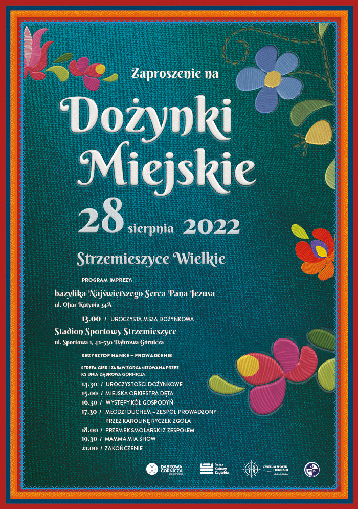 28 sierpnia w Strzemieszycach Wielkich odbędą się Dożynki Miejskie 2022 organizowane przez Pałac Kultury Zagłębia, miasto Dąbrowa Górnicza, Centrum Sportu i Rekreacji oraz Klub Sportowy Unia Dąbrowa Górnicza!