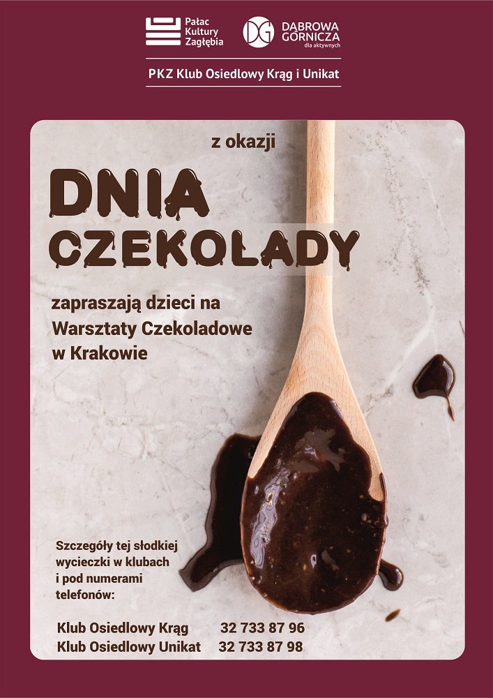 W kwietniu obchodzimy najsłodsze święto w roku - Dzień Czekolady. Z tej okazji Kluby Osiedlowe Krąg oraz Unikat zapraszają dzieci na warsztaty czekoladowe do Krakowa. Oryginalne zajęcia poprowadzą wykwalifikowani deseranci. Wycieczka odbędzie się 21 kwietnia. Zapisy i szczegółowe informacje w Klubach Osiedlowych i pod numerami telefonów: