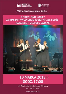 Świetlica Środowiskowa w Błędowie zaprasza Panie, małe i duże, na Dzień Kobiet, w trakcie którego będzie można pobiesiadować z zespołem Swojaki oraz mile spędzić sobotnie popołudnie. Wesołe spotkanie odbędzie się 10 marca o godz. 17:00.