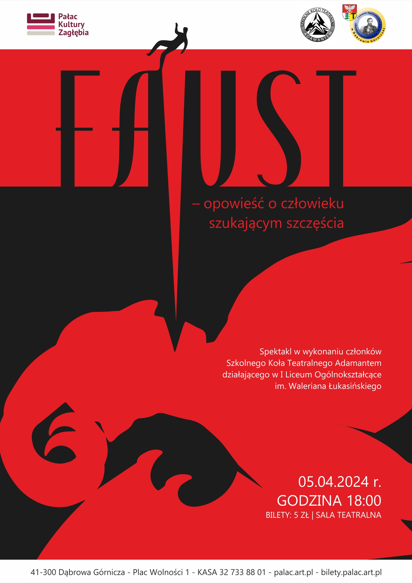 Szkolne Koło Teatralne ADAMANTEM oraz Pałac Kultury Zagłębia zapraszają na spektakl Faust – opowieść o człowieku szukającym szczęścia -