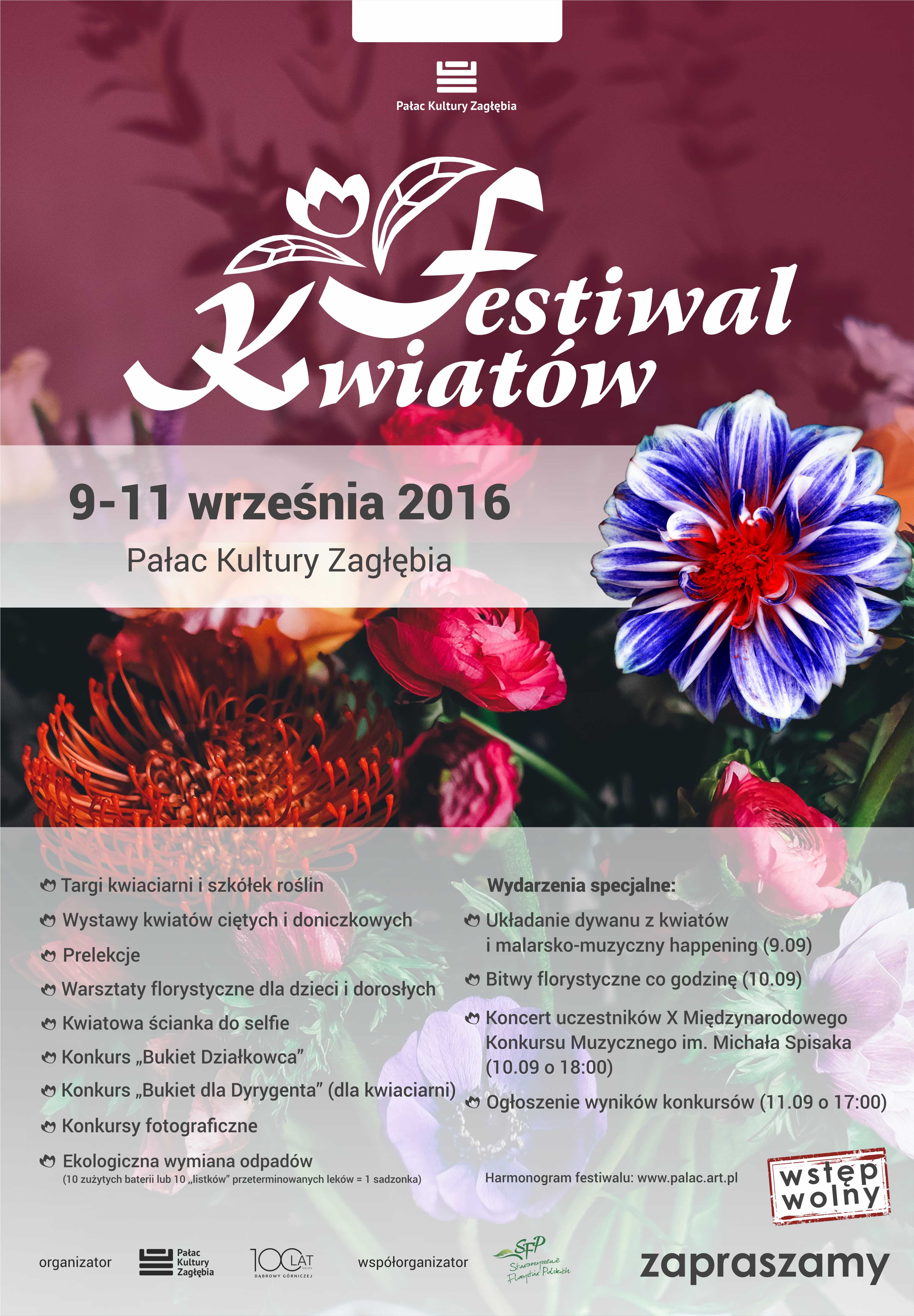 W dniach 9-11.09.2016 r. Pałac Kultury Zagłębia zakwitnie kolorami kwiatów. Na trzy dni przeniesiemy się bliżej natury, zagłębiając się w tajniki uprawy roślin i tworzenia kompozycji kwiatowych.