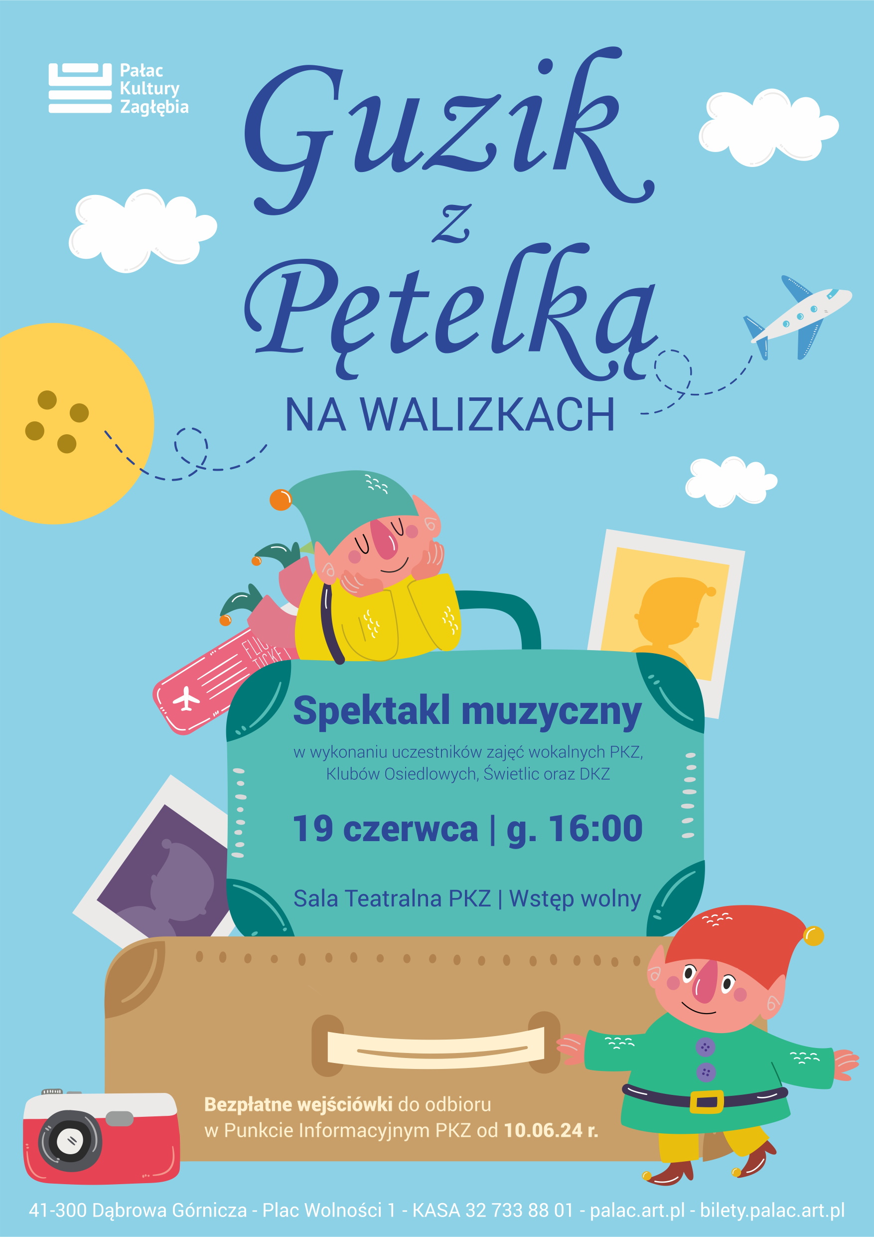 19 czerwca o 16:00 w Sali Teatralnej Pałacu Kultury Zagłębia odbędzie się spektakl muzyczny pt. "Guzik z Pętelką na walizkach".