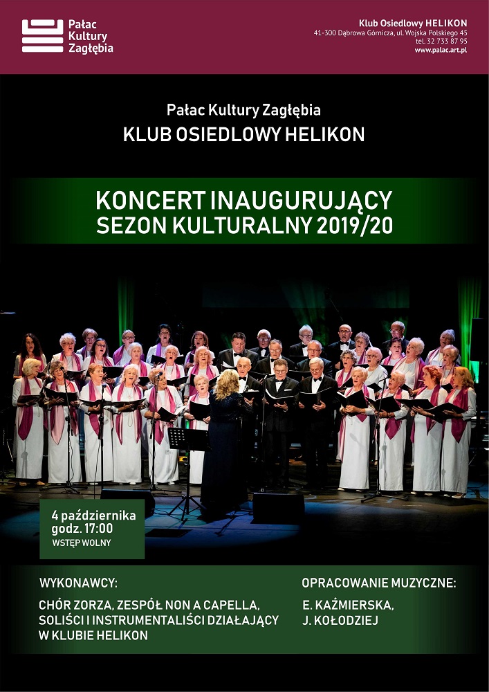 Klub Osiedlowy Helikon zaprasza wszystkich swoich sympatyków na koncert inaugurujący sezon kulturalny w tej placówce. Impreza odbędzie się 4 października o godzinie 17:00. Będzie tu można usłyszeć garść zróżnicowanej gatunkowo muzyki - przeboje operetkowe, popowe, piosenkę aktorską i światowy folk. Wykonawcami będą zespoły wokalne, soliści i instrumentaliści od lat związani z klubem. Całość została przygotowana przez Elżbietę Kaźmierską i Jerzego Kołodzieja.