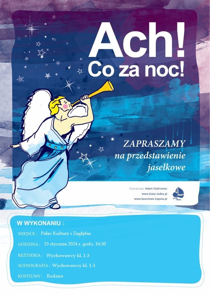 23 stycznia o godz. 16:30 zapraszamy do Sali Teatralnej Pałacu Kultury Zagłębia na przedstawienie jasełkowe w wykonaniu uczniów Katolickiej Szkoły Podstawowej w Dąbrowie Górniczej.