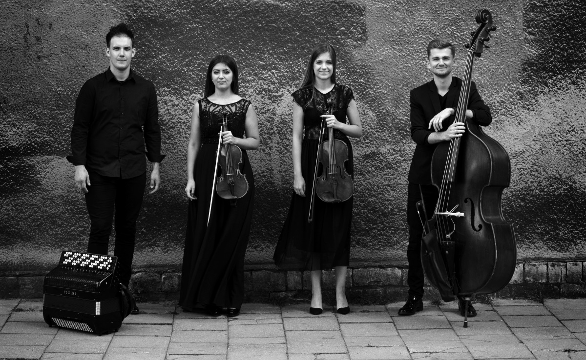 Kwartesencja - zespół tworzy czwórka młodych artystów, których połączyła muzyka i wspólne zamiłowanie do występowania przed publicznością. W 2012 Gabriela (skrzypaczka) oraz Michał (akordeonista) poznali się w Akademii Muzycznej w Katowicach, gdzie połączyły ich nie tylko więzy przyjaźni, ale także więzy duetu muzycznego. Marzeniem Michała było jednak powiększenie składu zespołu o instrumentalistów, z którymi można zagrać zarówno klasycznie, jak i rozrywkowo. I stało się - do duetu dołączyła Kornelia (altowiolistka) i Dawid (kontrabasista). Tak powstał zespół Kwartesencja. W jego repertuarze znajdują się utwory klasyczne, własne aranżacje utworów mistrzów gatunku m.in. Jerry'ego Bock'a, Carlosa Gardela, Astora Piazzoli, opracowania ludowej muzyki macedońskiej. Muzycy wykonują utwory pochodzące z różnych stron świata, dlatego trudno określić ich jednoznaczny styl. Choć zespół działa od niedawna, to może pochwalić się występami w Akademii Muzycznej im. Karola Szymanowskiego w Katowicach, Muzeum w Tarnowskich Górach, Filharmonii Śląskiej im. H.M. Góreckiego.