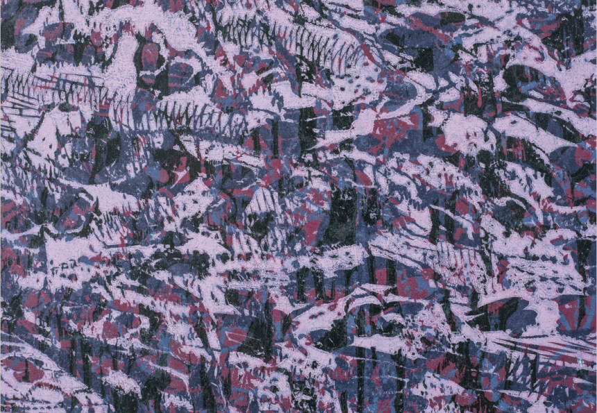 Kamuflaż jest pojęciem oznaczającym zamaskowanie, przesłonięcie czegoś dla niepoznaki. Jest to ogół działań mających wprowadzić przeciwnika w błąd. Ma na celu zmylenie, zakłamanie obrazu, ukrycie rzeczy, co jest pod powierzchnią. Dokonuje się poprzez ukrywanie, pozorowanie, działania demonstracyjne, dezinformację. Stosowany jest przez ludzi, zwierzęta i rośliny; przez drapieżniki i ofiary. Cykl grafik pt. "Kamuflaż" skupia się na temacie kamuflażu, wtapiania się w tło, szumu otoczenia, dezintegracji informacji. Pierwotną inspiracją prac był wzór maskujący używany w wojskowości, sposoby kamuflażu, rodzaje kamuflażu i ich pochodzenie, historia powstawania metod maskowania oraz badania prowadzone nad najskuteczniejszym sposobem ukrycia przed wrogiem w różnych armiach świata. Temat ten rozwinął się z moich wcześniejszych realizacji artystycznych, w których poruszałam tematykę wojny. Wśród motywów, które stosowałam, pojawiał się także wzór maskujący. Motyw wzoru maskującego eksplorowałam dalej, oddalając się od jego pierwotnego znaczenia związanego z maskowaniem w wojskowości. Wzory kamuflażu powstały na podstawie analizy form i zjawisk występujących w naturze takich jak organiczny kształt, ubarwienie czy struktura materii, a także wykorzystanie światła i cienia. Wszystkie te elementy przyjmują w kamuflażu formę bliską sztuki abstrakcyjnej. Formy te intrygują i pobudzają wyobraźnię. Motyw kamuflażu w moich pracach zaczął dążyć coraz bardziej w kierunku abstrakcji, odbiegając od wojennych konotacji i stał się autonomicznym bytem. Zainteresowałam się ponadto znaczeniem kamuflażu w codziennym życiu i w kulturze. Zwróciły moją uwagę zagadnienia związane z pojęciem maskowania rzeczywistości, wypierania wiedzy o faktycznym stanie rzeczy i konstruowania alternatywnych rzeczywistości takie jak symulakrum, płynna rzeczywistość czy postprawda. Uzmysłowiłam sobie, że występowanie zjawisk o charakterystyce kamuflażu poddaje w wątpliwość nasze pojęcie na temat otaczającego świata. Analiza form występujących w naturze oraz eksperymenty graficzne odegrały ważną rolę w procesie twórczym, istotne znaczenie miały działania intuicyjne. Matryce graficzne powstały w technice drzeworytu oraz kolagrafii. Ślad, który zastosowałam, jest dynamiczny i organiczny, przywodzący na myśl desenie ze świata przyrody. Grafiki powstawały z wielu warstw rozedrganych płaszczyzn. Struktura śladu jest rozbita i wibrująca, kształty są rozczłonkowane i zdezintegrowane. Kolejne warstwy grafiki wzmacniały efekt szumu wizualnego, powodując błądzenie wzroku po dywizjonistycznej powierzchni grafiki. Duże formaty prac wzmacniają oddziaływanie obrazu, pozwalają na zatopienie się w nich. Kompozycje prac graficznych pozbawione są centrum i punktów zaczepienia dla wzroku powodując dezorientację, zaprzeczając normalnemu procesowi spostrzegania wzrokowego, który zawsze próbuje nadać obrazowi jakąś organizację. W pracach występuje pozornie jednolita gama kolorystyczna, która jest wewnętrznie zróżnicowana. Skontrastowane niewielkie plamy koloru powodują pozorne pulsowanie powierzchni obrazu. Kompozycję prac uzupełniają smugi koloru, podkreślając pulsowanie powierzchni w makroskali. Badania nad rolą oświetlenia w odbiorze i postrzeganiu form prowadzone w eksperymentach nad maskowaniem wojskowym zainspirowały mnie do stworzenia cyklu fotografii. Fotografie towarzyszące pracom graficznym powstały przy użyciu aparatu wielkoformatowego na analogowych czarno-białych kliszach w rozmiarze 4 × 5". Fotografie poruszają temat przezroczystości oraz maskowania za pomocą światła. Przezroczystość wydaje się być najskuteczniejszym sposobem ukrycia przedmiotu przed wzrokiem, lecz w pewnych warunkach oświetleniowych ulega demaskacji.