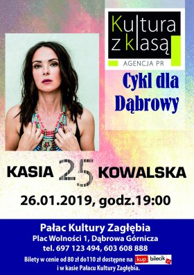 Kasia Kowalska wystąpi na pałacowej scenie 26 stycznia 2019 r. o godz. 19:00, tym razem w koncercie pod nazwą Kasia 25 Kowalska.