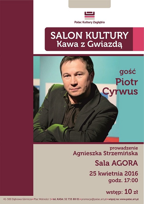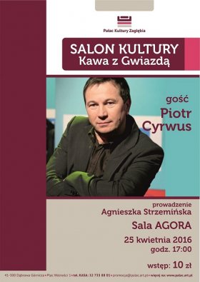 Zapraszamy na kolejne spotkanie z cyklu „Salon kultury. Kawa z Gwiazdą”, którego gościem będzie Piotr Cyrwus. Spotkanie poprowadzi Agnieszka Strzemińska – dziennikarka Radia Katowice.