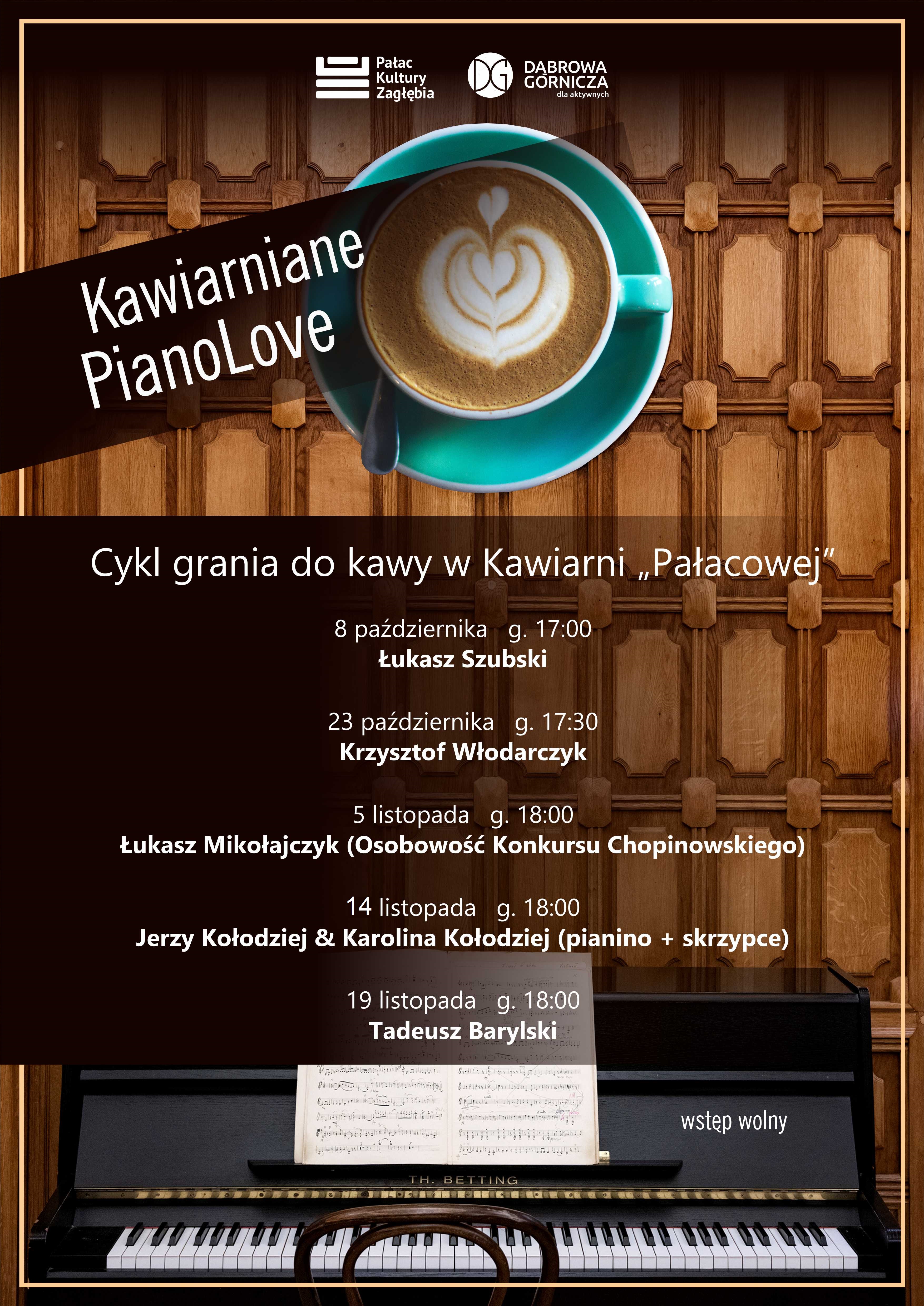 Kawiarniane PianoLove - cykl występów lokalnych pianistów, którzy grając wybrane przez siebie utwory, umilą spotkanie towarzyskie, rozmowę lub po prostu picie kawy w murach kawiarni Pałacu Kultury Zagłębia.