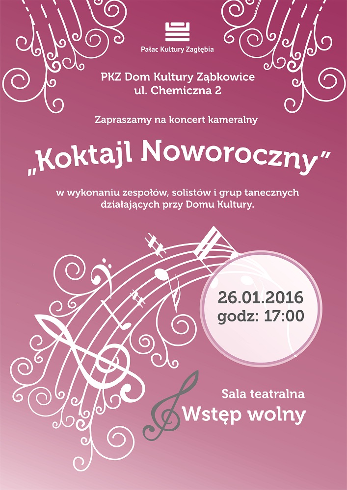 Wszystkich, którzy chcą przedłużyć nastrój noworoczny zapraszamy do Domu Kultury Ząbkowice na Koktajl Noworoczny.