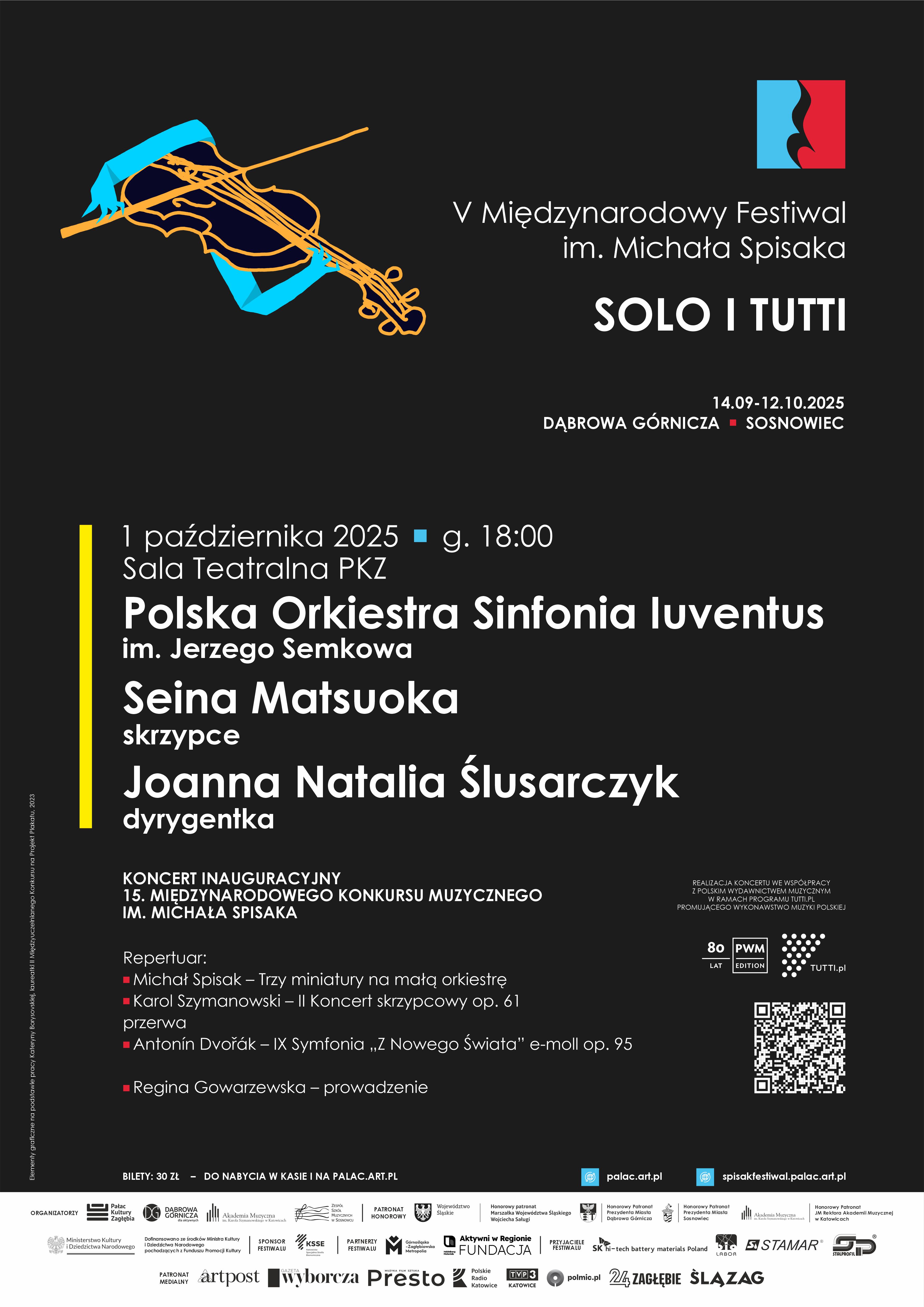 Wydarzenie realizowane w ramach V Międzynarodowego Festiwalu im. Michała Spisaka uświetni występ Polskiej Orkiestry Sinfonia Iuventus, powstałej z inicjatywy Jerzego Semkowa, jednego z najwybitniejszych polskich dyrygentów. W skład Orkiestry wchodzą najzdolniejsi absolwenci i studenci uczelni artystycznych, którzy nie ukończyli 30 lat. Solistką koncertu będzie Seina Matsuoka – japońska skrzypaczka mieszkająca w Wiedniu. Studiowała pod kierunkiem prof. Machie Oguri, prof. Michaela Frischenschlagera, prof. Petera Schuhmayera, prof. Stefana Mendla. Półfinalistka Konkursu Królowej Elżbiety (2019), laureatka I nagrody na 1. Międzynarodowym Konkursie Skrzypcowym VŠMU (2022) oraz I nagrody w II Międzynarodowym Konkursie Muzycznym im. Karola Szymanowskiego w Katowicach (2023).
