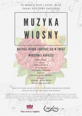 30 marca o g. 18:00 zapraszamy na niezapomniany wieczór, który zabierze Państwa w muzyczną podróż przez wieki i emocje – od brawurowych dźwięków wiedeńskiej operetki, poprzez włoski humor i francuską pasję, aż po subtelną, wiosenną opowieść z Ameryki. Orkiestra Maxime, pod batutą Andrzeja Mandryki, oraz wybitni soliści: Anna Mucha (sopran), Zuzanna Korona (mezzosopran) i Kacper Kostrzewski (baryton), zaprezentują bogaty program, w którym klasyka spotyka się z wiosennym tchnieniem nowoczesności.