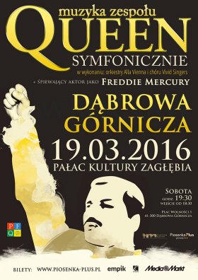 Niezwykłe koncerty łączące nieśmiertelną muzykę zespołu QUEEN z symfonicznymi aranżacjami w wykonaniu orkiestry Alla Vienna i 20-osobowego chóru Vivid Singers już od ponad trzech lat zachwycają fanów twórczości legendarnej grupy. To dwugodzinny spektakl podzielony na dwie części, z najwspanialszymi kompozycjami Queen. Finał występu uświetni także występ solisty - śpiewającego aktora - wcielającego się w rolę Freddiego Mercury’ego. Zespół wystąpi z najnowszym programem, do którego włączono m.in “Bicycle Race”, “Another One Bites THe Dust” oraz wyjątkową kompozycję “Barcelona”, którą Freddie Mercury nagrał wraz z hiszpańską śpiewaczką operową Montserrat Caballe. W drugiej części gościnnie wystąpi również gitarzysta solowy Piotr Wieczorek.