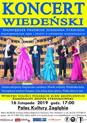 16 listopada o 17:00 na deskach Pałacu Kultury Zagłębia będzie można ponownie przenieść się w świat operetek wiedeńskich, dzięki utworom w wykonaniu wybitnych solistów polskich scen muzycznych oraz Kameralnego Zespołu Straussowskiego. Zapraszamy na Koncert Wiedeński.