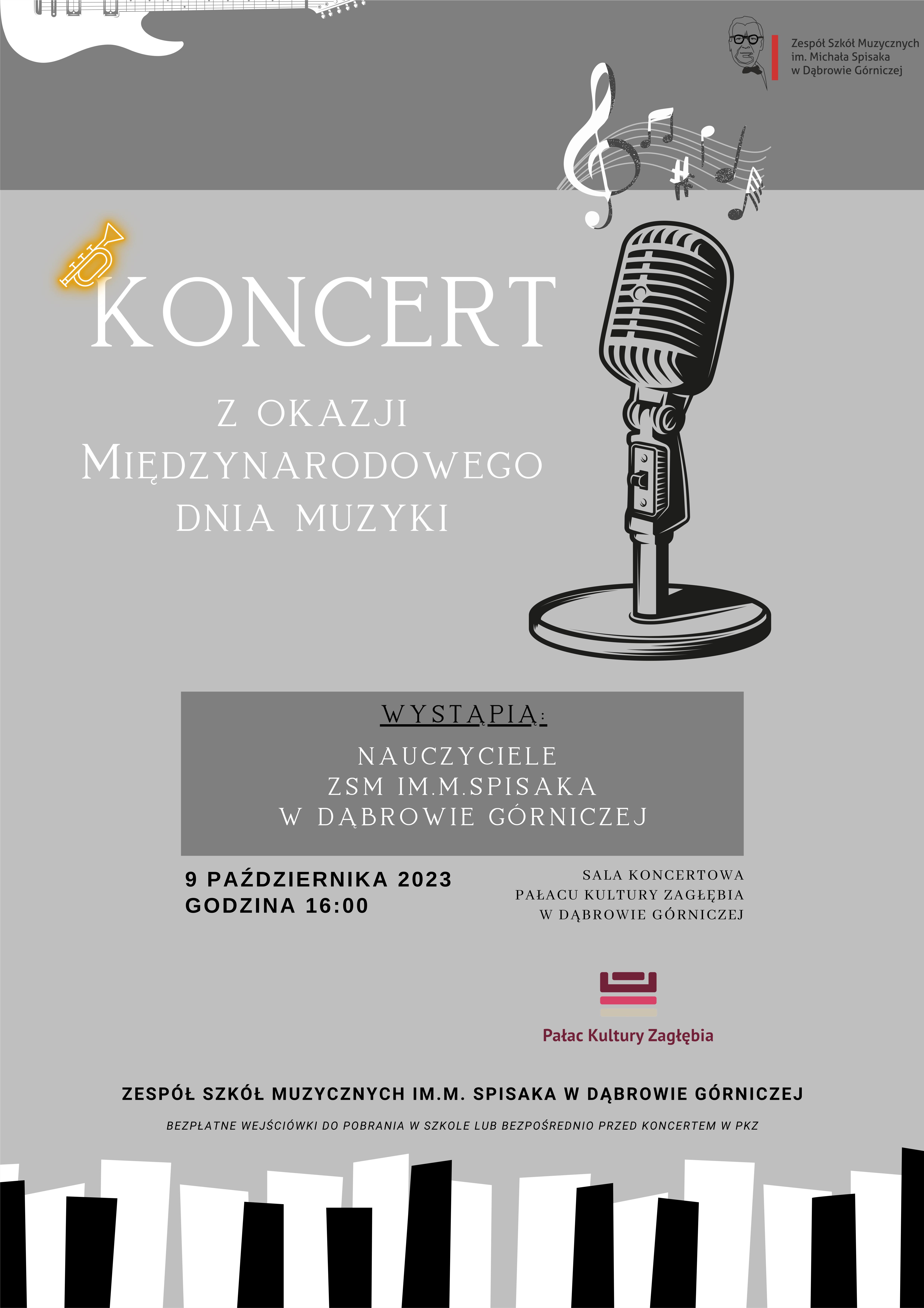 9 października o godz. 16:00 w Sali Teatralnej Pałacu Kultury Zagłębia odbędzie się koncert z okazji Międzynarodowego Dnia Muzyki!