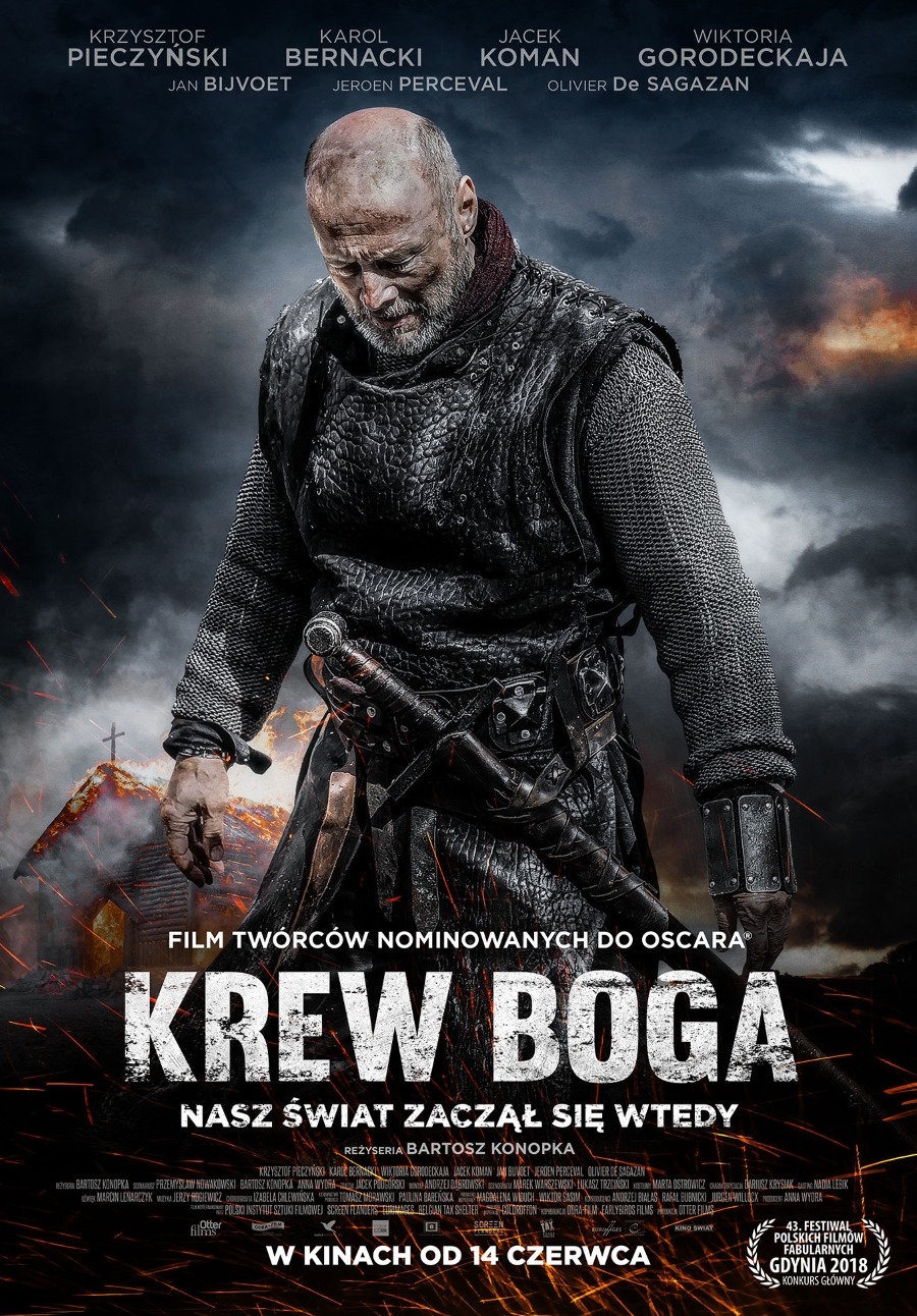 Najnowszy film nominowanego do Oscara i nagrodzonego na festiwalu w Berlinie reżysera Bartosza Konopki - twórcy głośnego Królika po berlińsku i docenionego przez widzów i krytyków obrazu Lęk wysokości. Krew Boga to posiadająca współczesny wymiar refleksja nad istotą wiary i kościoła, formą przypominająca bezkompromisowe dzieła Nicolasa Windinga Refna oraz serialowy hit Gra o tron. W rolach głównych występują: Krzysztof Pieczyński (Belfer, Ziarno prawdy, Jack Strong), Karol Bernacki (Amok), Jacek Koman (Moulin Rouge!, Son of a Gun, Ziarno prawdy), Wiktoria Gorodeckaja (aktorka Teatru Narodowego w Warszawie) Jan Bijvoet (Peaky Blinders, Borgman, W objęciach węża), Jeroen Perceval (Głowa byka, Ardeny) oraz jeden z najoryginalniejszych współczesnych performerów - Olivier de Sagazan.