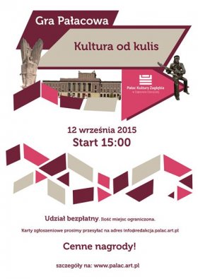 To już druga edycja Gry Pałacowej. Rok temu udział w zabawie przysporzył uczestnikom wiele wrażeń. Gra toczyła się w dniu ponownego otwarcia Pałacu Kultury Zagłębia po remoncie. Gracze mieli okazję zmierzyć się z wieloma zadaniami, które wymagały od nich wiedzy z zakresu filmu, sztuki, zasad poprawnej pisowni, znajomości instrumentów muzycznych, a także odrobiny zdolności plastycznych. Pole do popisu mieli także niespełnieni poeci.
