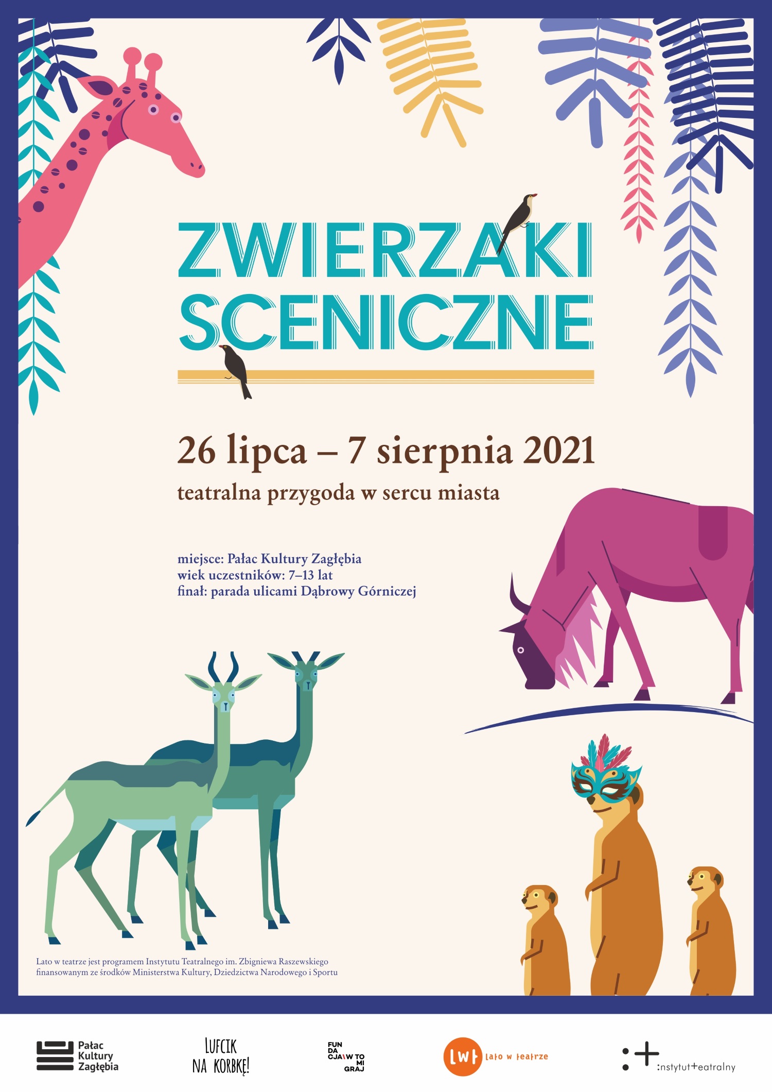 Od 26 lipca do 7 sierpnia zapraszamy dzieciaki w wieku 7-13 lat na teatralną przygodę w sercu miasta! Zwierzaki Sceniczne to półkolonie teatralne Pałacu Kultury Zagłębia przygotowane w ramach programu Lato w Teatrze, realizowanego przez Instytut Teatralny im. Zbigniewa Raszewskiego.