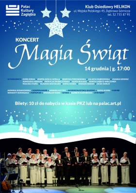 Klub Osiedlowy Helikon zaprasza wszystkich swoich sympatyków na koncert świąteczny pt. Magia Świąt, który odbędzie się dnia 14.12.2024 r.