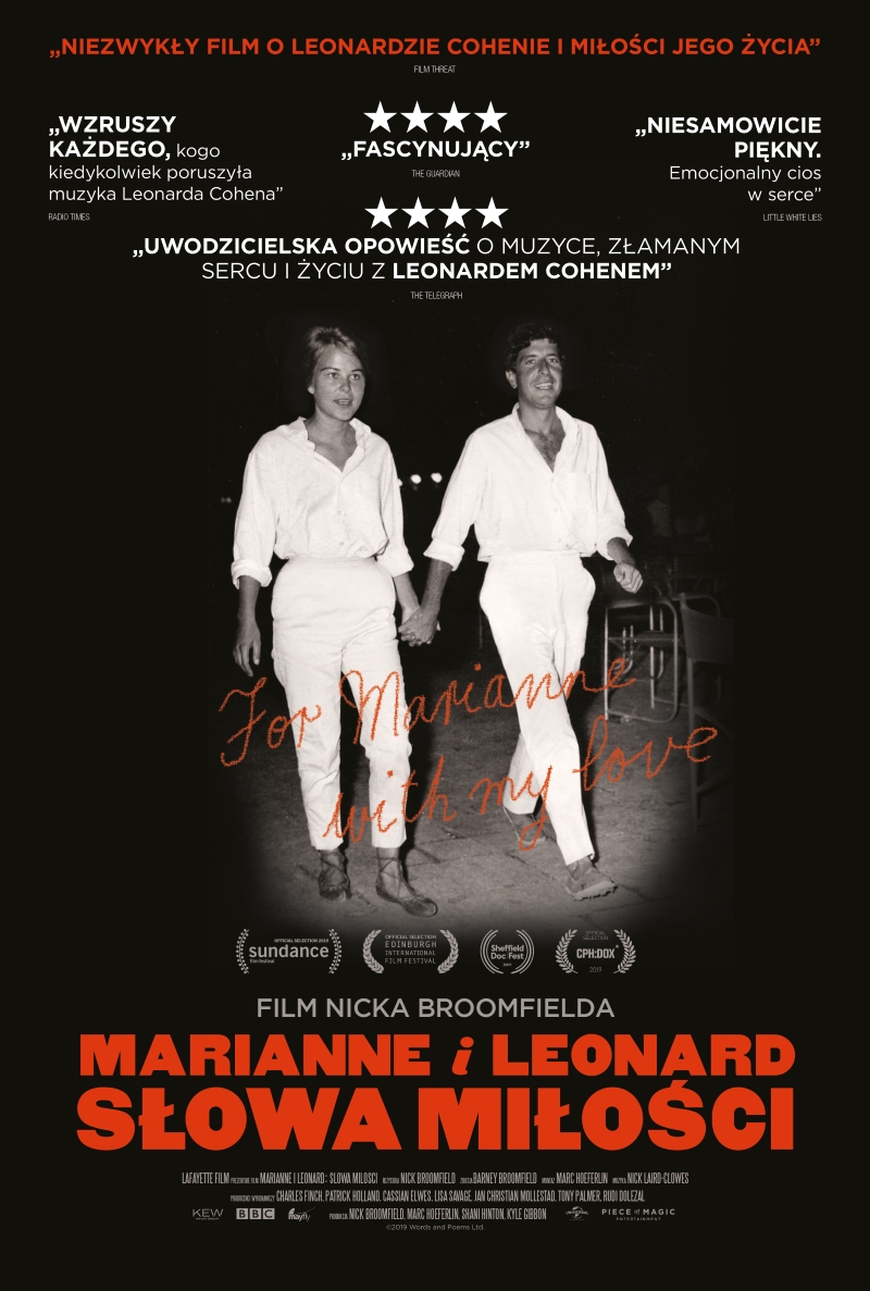 Film legendy brytyjskiego dokumentu, Nicka Broomfielda. Marianne i Leonard: słowa miłości to piękna i dramatyczna historia miłości Leonarda Cohena i jego muzy Marianne Ihlen. Ich uczucie narodziło się w 1960 roku na idyllicznej greckiej wyspie Hydra, w miejscu do którego zjeżdżali się artyści z całego świata. Film pokazuje początki ich związku oraz to jak zmieniła się ich miłość, gdy Cohen odniósł muzyczny sukces.