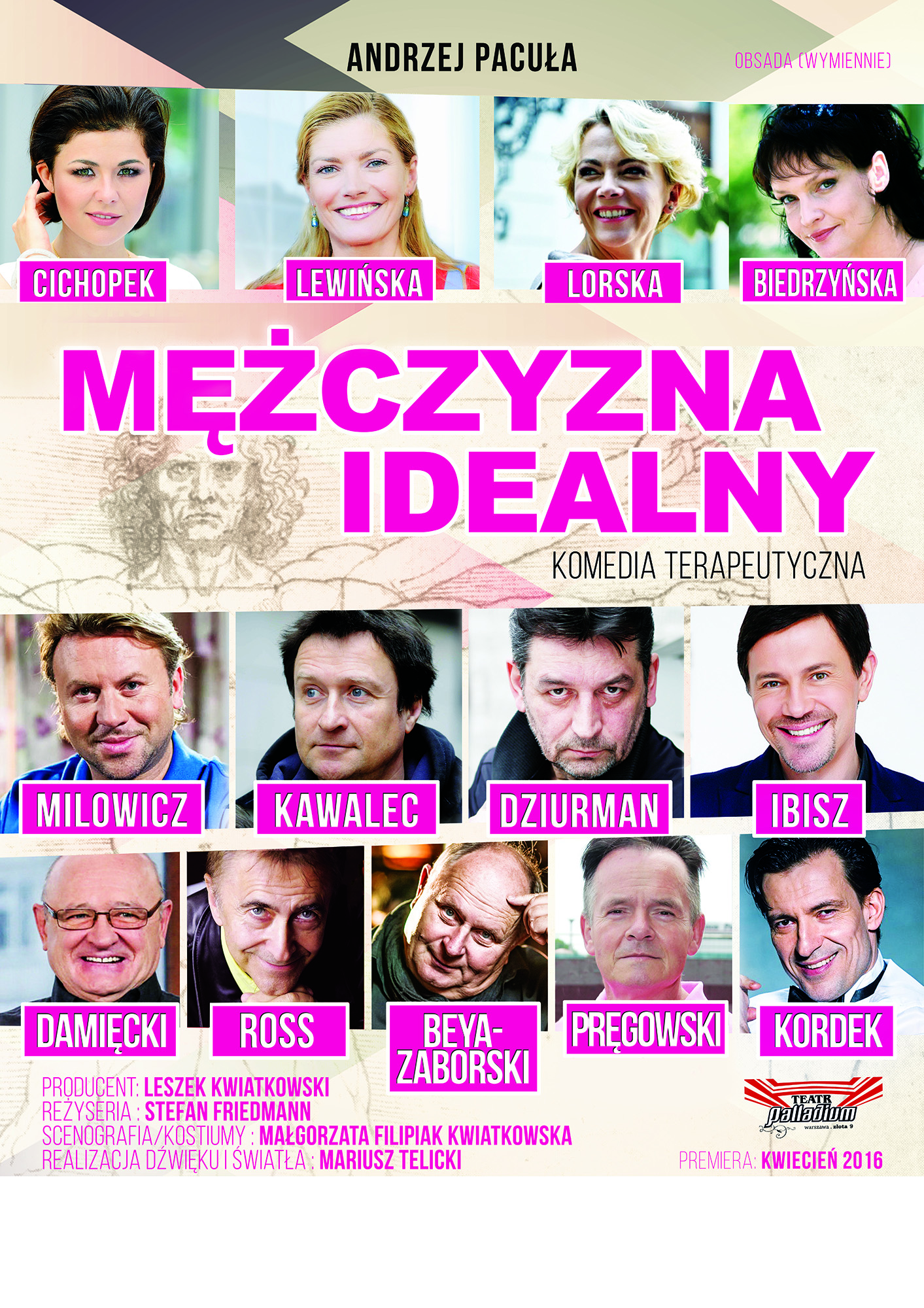 Opis spektaklu: Sławny showman telewizyjny, gwiazdor estrady zgłasza się na kurację do kliniki leczenia męskich nerwic. Nie podejrzewa, że to klinika, zupełnie niepodobna, do innych. Kieruje nią ekscentryczny profesor psychiatrii, stosujący metody bliższe raczej hippisom i playboy'om, niż instytutowi naukowemu. Jego najbliższa współpracowniczka natomiast, doktor psychiatrii i bio-genetyki, umysł wybitny i szalony, jest owładnięta ideą "wyprodukowania" mężczyzny idealnego, zdolnego przetrwać w epoce nadchodzącego matriarchatu. Pracuje nad tym w ukryciu i już udało się jej "wyhodować" pierwszy egzemplarz mężczyzny idealnego, niestety, z wieloma ukrytymi i jawnymi wadami. Zamierza go zatem udoskonalić. Opracowuje rewolucyjną metodę przeszczepiania osobowości. Ale kto będzie dawcą osobowości dla mężczyzny idealnego? Wybór pada na telewizyjnego showmana, który nie zdaje sobie sprawy, że stał się obiektem eksperymentów, jakich dotąd, ludzkość nie znała. Profesor usiłuje powstrzymać szaleństwo uczonej koleżanki. Wie, że kształtowanie dowolnych ludzi, poprzez przeszczepianie osobowości - może być zagrożeniem dla całego świata, gdyby ta metoda dostała się w ręce szaleńców, polityków czy generałów. Zaczyna się walka, intrygi, komiczne zwroty akcji i zamiany ról - jest romans, spisek i seans seksterapeutyczny, jest terapia śmiechem rozbierany poker, jest czworo bohaterów, ale nikt, nie jest tym, za kogo się podaje. Wszyscy kogoś udają.