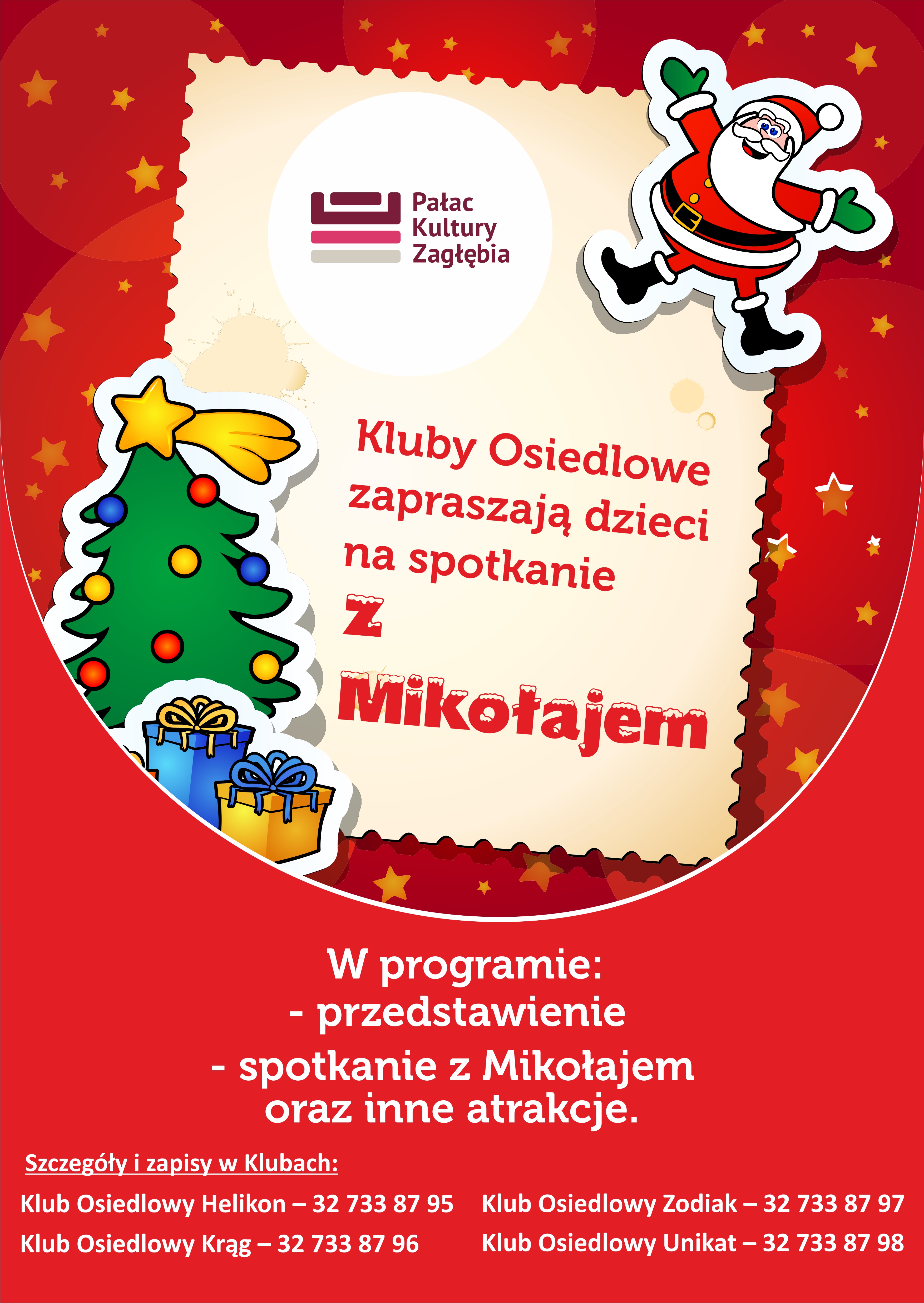 Na wszystkie grzeczne dzieci w pierwszy weekend grudnia w Klubach Osiedlowych będzie czekał Mikołaj oraz artystyczna niespodzianka.