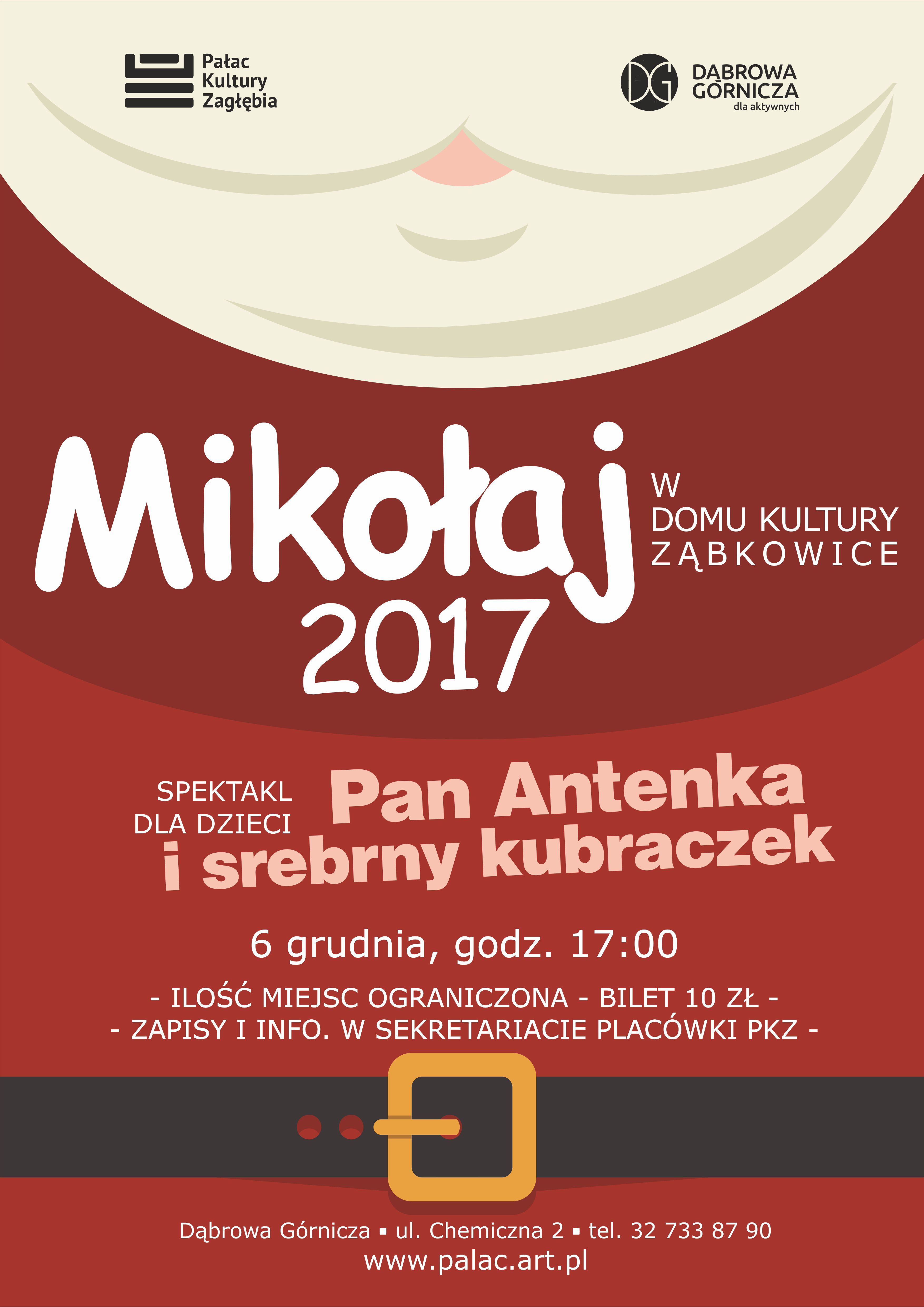 6 grudnia o 17:00 w Domu Kultury PKZ Ząbkowice odbędzie się zabawa mikołajkowa dla dzieci w połączeniu ze spektaklem Pan Antenka i srebrny kubraczek. Nie obędzie się również bez prezentów oraz spotkania ze Świętym w czerwonym kubraku.