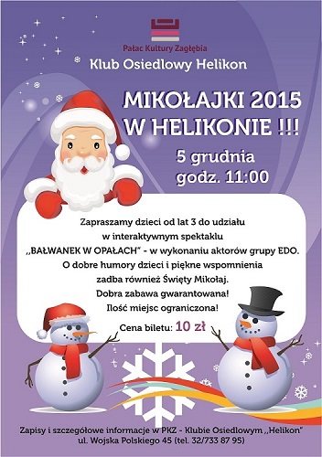 Zapraszamy 5 grudnia, godzina 11:00 Klub Helikon.