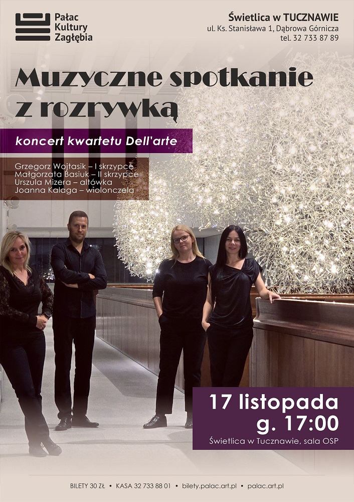 Świetlica w Tucznawie, tradycyjnie już, zaprasza na koncert jesienny. Tym razem będzie to Muzyczne spotkanie z rozrywką, czyli koncert kwartetu smyczkowego.
