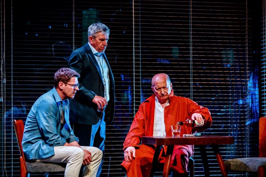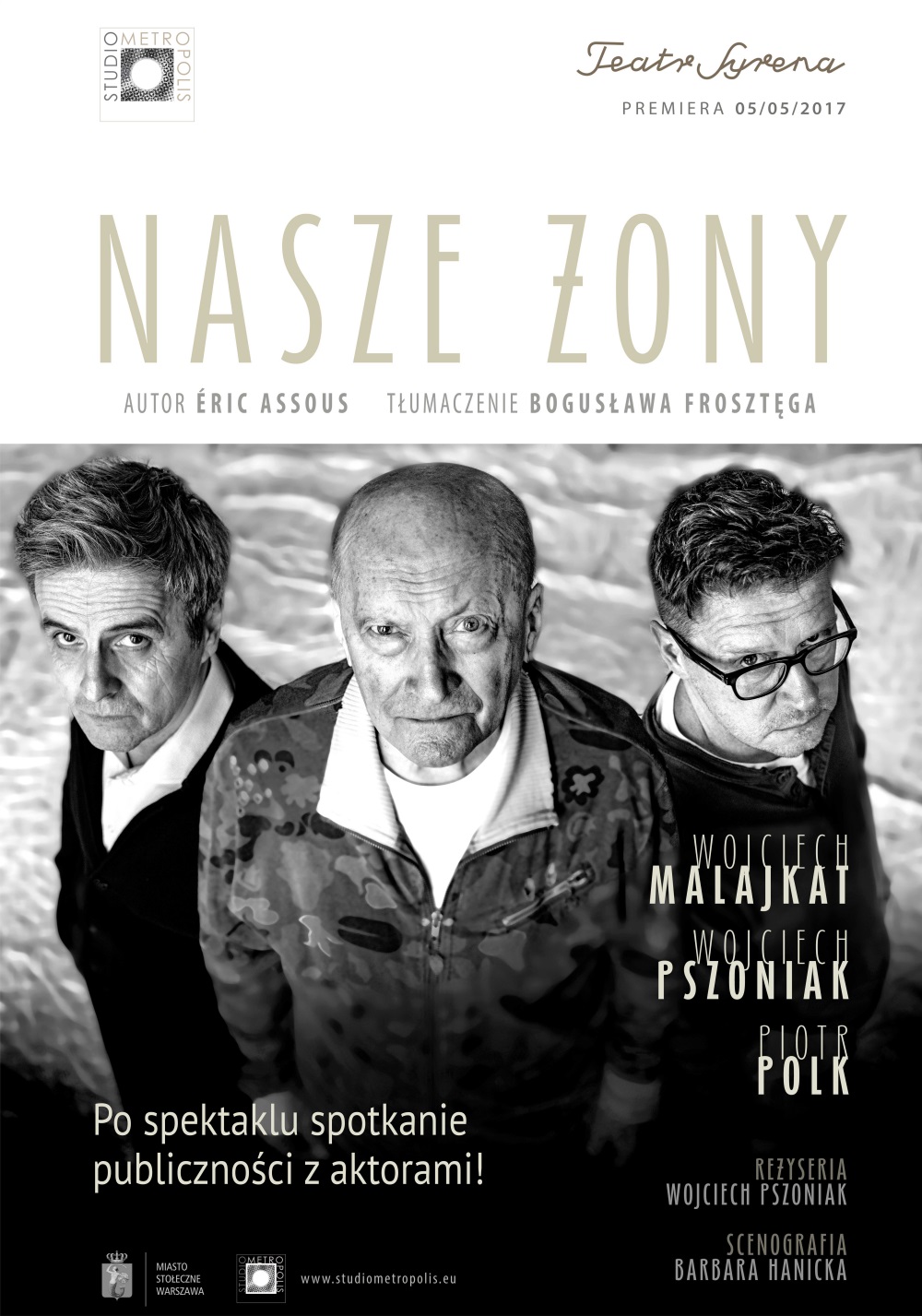 "Nasze żony" to sztuka, w której aktor jest na pierwszym planie, jest podmiotem, a nie - jak to się dziś często zdarza - przedmiotem. Lubię taki teatr. Taki teatr jest mi bliski. Interesują mnie ludzkie losy, zmaganie się człowieka z życiem. Nie chcę, by coś przeszkadzało mi w zbliżeniu się do człowieka, w jego zrozumieniu. Wybrałem tę sztukę również dlatego, żeby spotkać się na scenie z moimi wspaniałymi Kolegami - Wojtkiem Malajkatem i Jurkiem Radziwiłowiczem - mówi Wojciech Pszoniak.