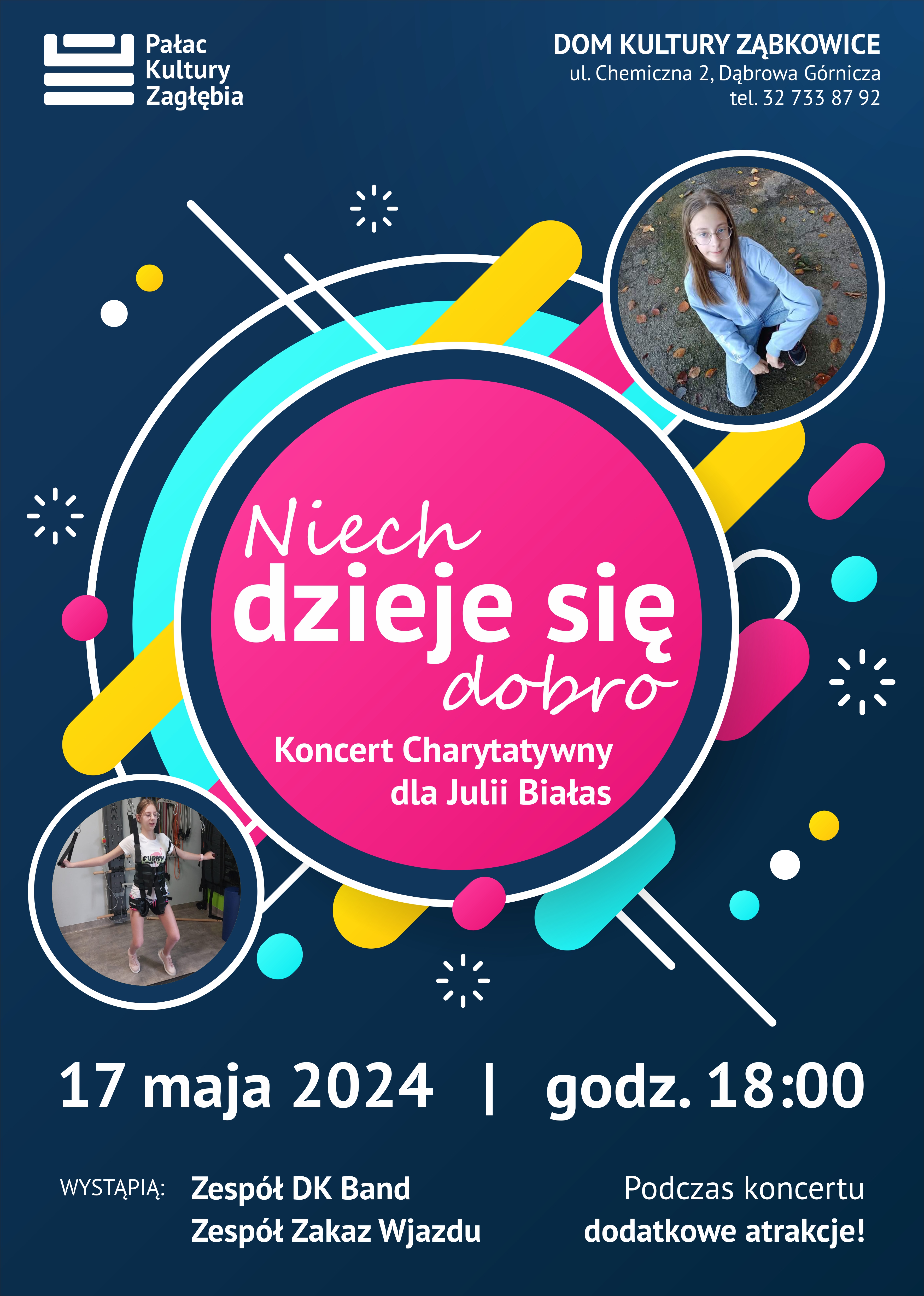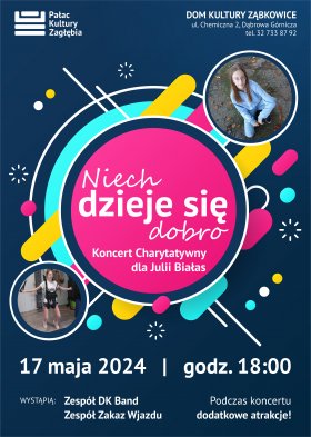 17 maja o godz. 18:00 w Domu Kultury Ząbkowice odbędzie się Koncert Charytatywny dla Julii Białas, pt. Niech dzieje się dobro, na który serdecznie zapraszamy!