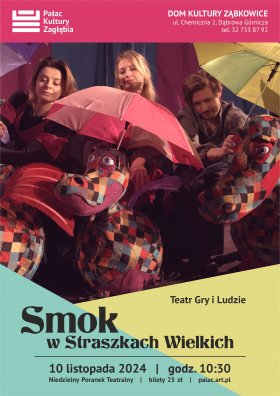 10 listopada o godz. 10:30 zapraszamy najmłodszych do Sali Teatralnej Domu Kultury Ząbkowice na przedstawienie z cyklu Niedzielne Poranki Teatralne, pt. „Smok w Straszkach Wielkich” w wykonaniu aktorów Teatru Gry i Ludzi.
