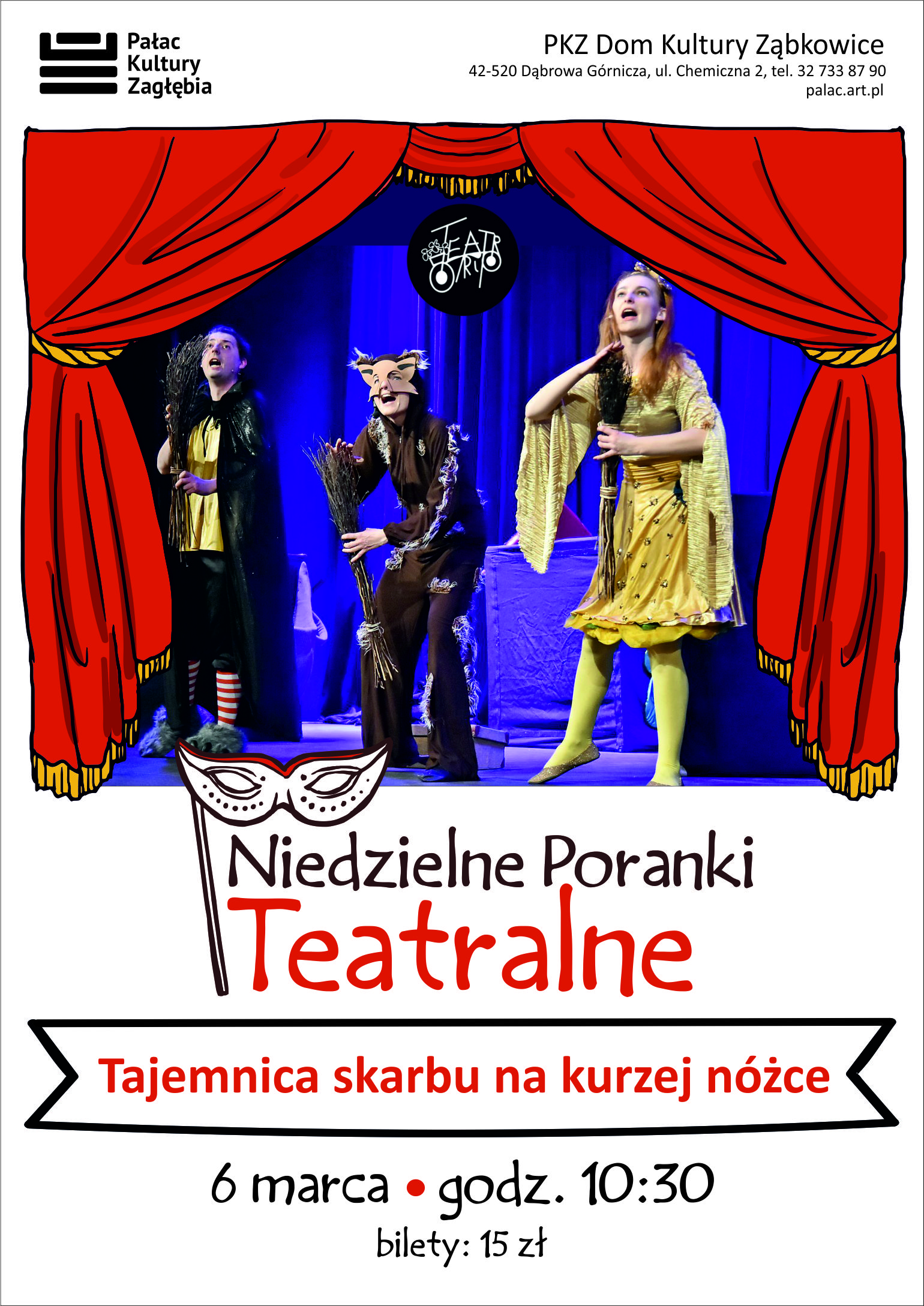 Widowisko interaktywne Tajemnica skarbu na kurzej nóżce w wykonaniu aktorów Teatru TRIP na scenie PKZ Domu Kultury Ząbkowice w ramach cyklu Niedzielne Poranki Teatralne - 6 marca g. 10:30!