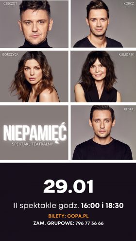NIEPAMIĘĆ to nowy tytuł Garnizonu Sztuki - producentów spektakli: POZYTYWNI i CZWORO DO POPRAWKI oraz SAME PLUSY