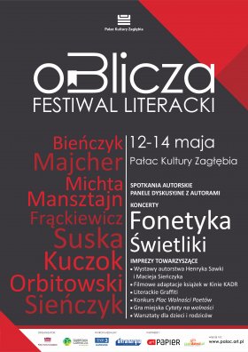 Oblicza Festiwal Literacki to trzy dni pełne kultury. Każdy z nich będzie obfitował w spotkania autorskie, koncerty, konkursy, dyskusje panelowe oraz wydarzenia towarzyszące. Będzie to okazja do pokazania odmiennych sposobów funkcjonowania słowa pisanego w przestrzeni społecznej - różne metody jego działania w kanałach medialnych, infrastrukturze miejskiej, performansie, happeningu czy graffiti.