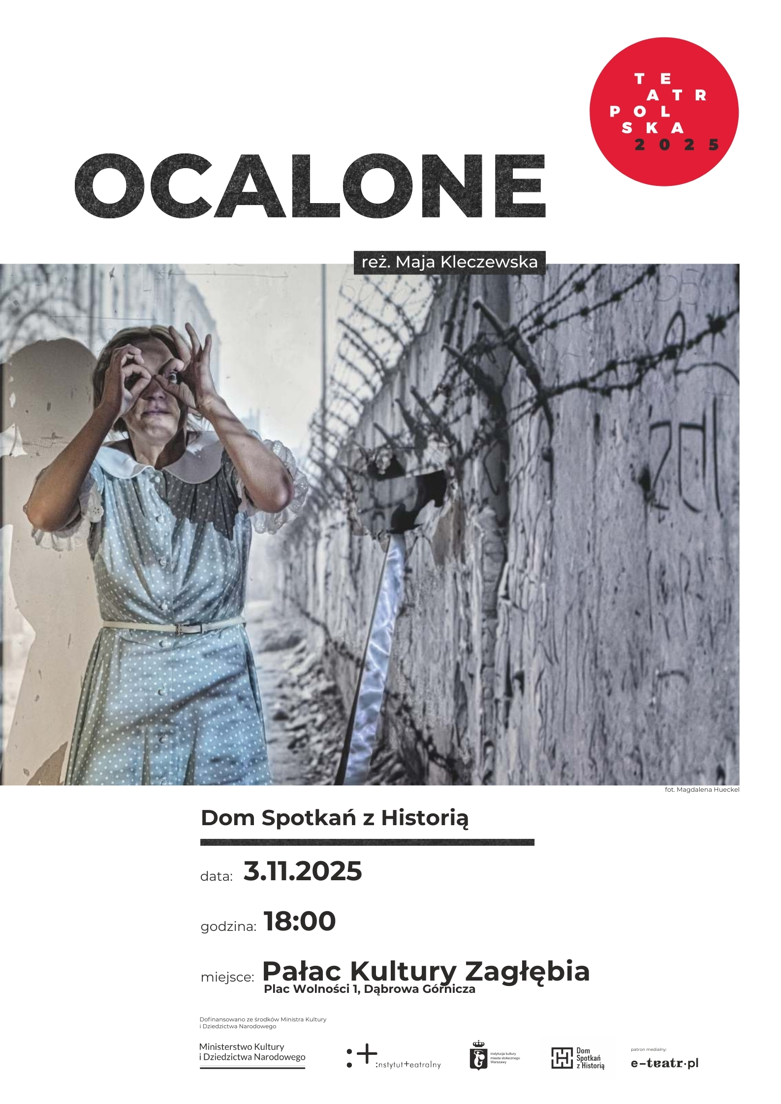 3 listopada o 18:00 na deskach sceny głównej Pałacu Kultury Zagłębia odbędzie się spektakl Ocalone - w ramach projektu Teatr Polska. Wydarzenie odbędzie się w konwencji cyklu Scena|anecS co oznacza, że widzowie zasiądą na pałacowej scenie.