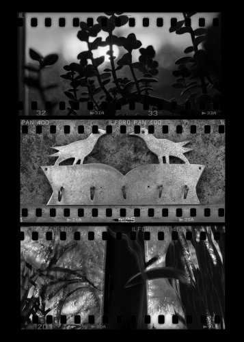 Artysta posuwa się jednak dalej, inicjując działania fotograficzne wychodzące poza tradycyjną technikę. To fotogram, gdzie obiekty układa się bezpośrednio na papierze fotograficznym. Z kolei klasycznie wykonane zdjęcia multiplikuje i zestawia, otwierając je na dopowiadaną przez wyobraźnię przestrzeń.