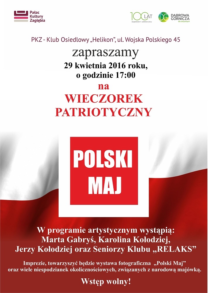 Nastrojowa muzyka polskich kompozytorów romantycznych, strofy poezji patriotycznej oraz uroki rozkwitającej przyrody i majowych tradycji polskich utrwalone w obiektywie i wyeksponowane na wystawie fotograficznej „Polski Maj” – to wszystko będzie klimatycznym preludium do rozpoczynającej się majówki narodowej.