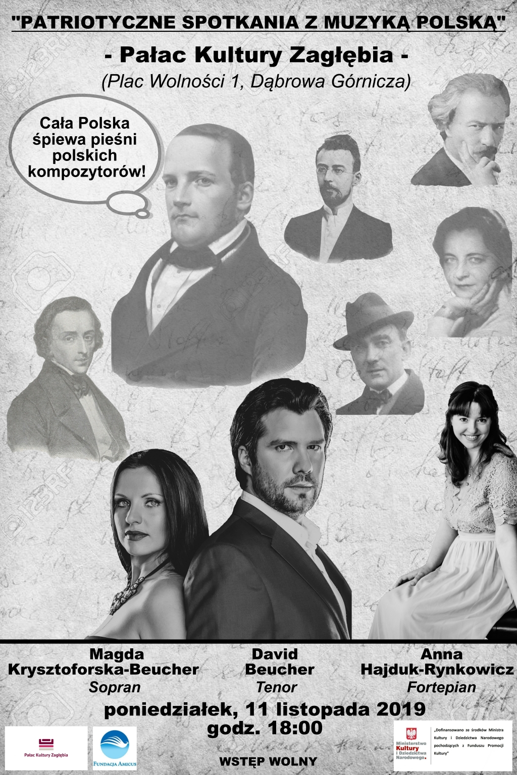 Koncert jest projektem realizowanym przez Fundację Amicus. Spotkanie dzielić się będzie na dwie części. W pierwszej części artyści wykonają dla publiczności koncert złożony z solowych utworów fortepianowych, najpiękniejszych arii i pieśni polskich kompozytorów: Stanisława Moniuszki, Fryderyka Chopina, Mieczysława Karłowicza, Ignacego Jana Paderewskiego i innych. W drugiej części - po wprowadzeniu merytorycznym, rozgrzewce i rozśpiewaniu - publiczność śpiewać będzie wybrane pieśni polskich kompozytorów. Celem projektu jest zaktywizowanie różnych grup wiekowych do wspólnego poznania dorobku muzyki polskiej oraz do wspólnego muzykowania. Poprzez nasz projekt pragniemy zachęcić uczestników do powrotu do korzeni - wspólnego śpiewania w domach, które skupiało ludzi wokół idei patriotyzmu - dodają organizatorzy.