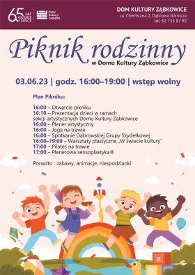 3 czerwca o godz. 16:00 zapraszamy do Domu Kultury Ząbkowice na Piknik Rodzinny!