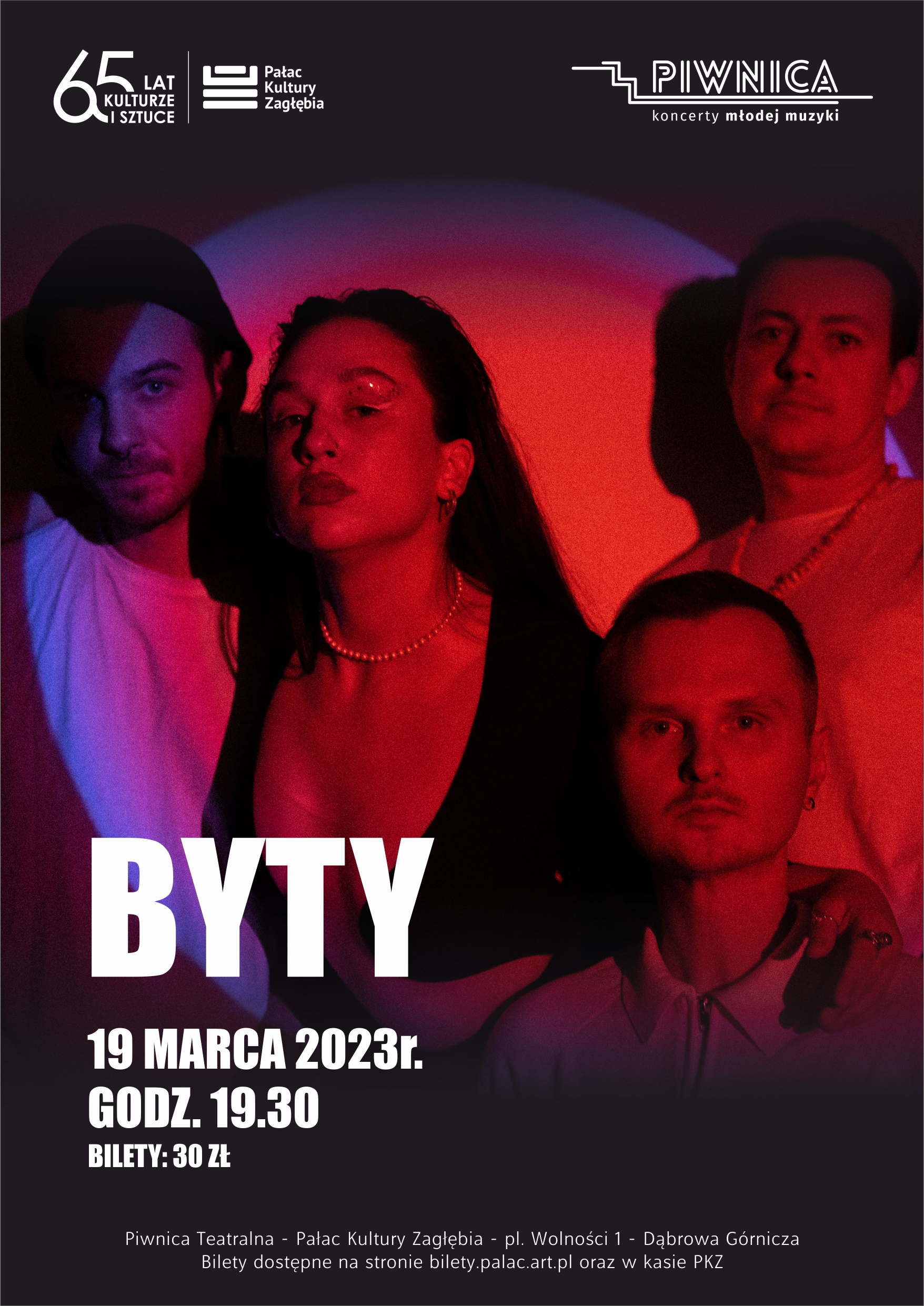 19 marca o 19:30 w Piwnicy Teatralnej Pałacu Kultury Zagłębia - w ramach cyklu PIWNICA - zagra zespół BYTY!