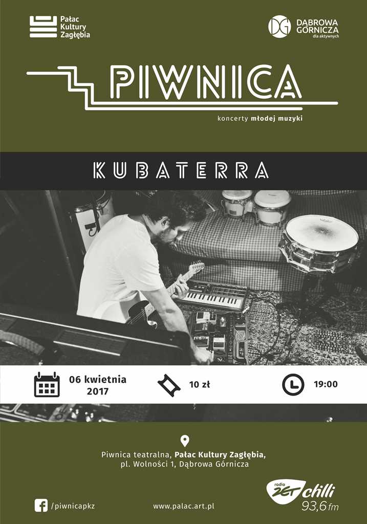 Przedstawiamy trzeci zespół, który zagości w naszej PIWNICY. Kubaterra, czyli projekt Kuba i Ziemia, a w zasadzie Kuba Dobrowolski (lider zespołu) to artysta nieistniejącej już krakowskiej grupy Camero Cat. Pierwsza płyta w ramach projektu została nagrana solowo przez Kubę w 2014 r. w Australii i o tym, jak brzmi teraz z zespołem, będzie można przekonać się na żywo 6 kwietnia o godzinie 19:00 w Piwnicy Teatralnej PKZ. Zainteresowanych losami lidera zespołu zapraszamy do krótkiej lektury tutaj, a poniżej zaproszenie na koncert od samego Kuby: