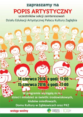 14 i 15 czerwca 2016 r., zapraszamy na pokaz podsumowujący całoroczną pracę dzieci i młodzieży uczestniczącej w zajęciach Edukacji Artystycznej.