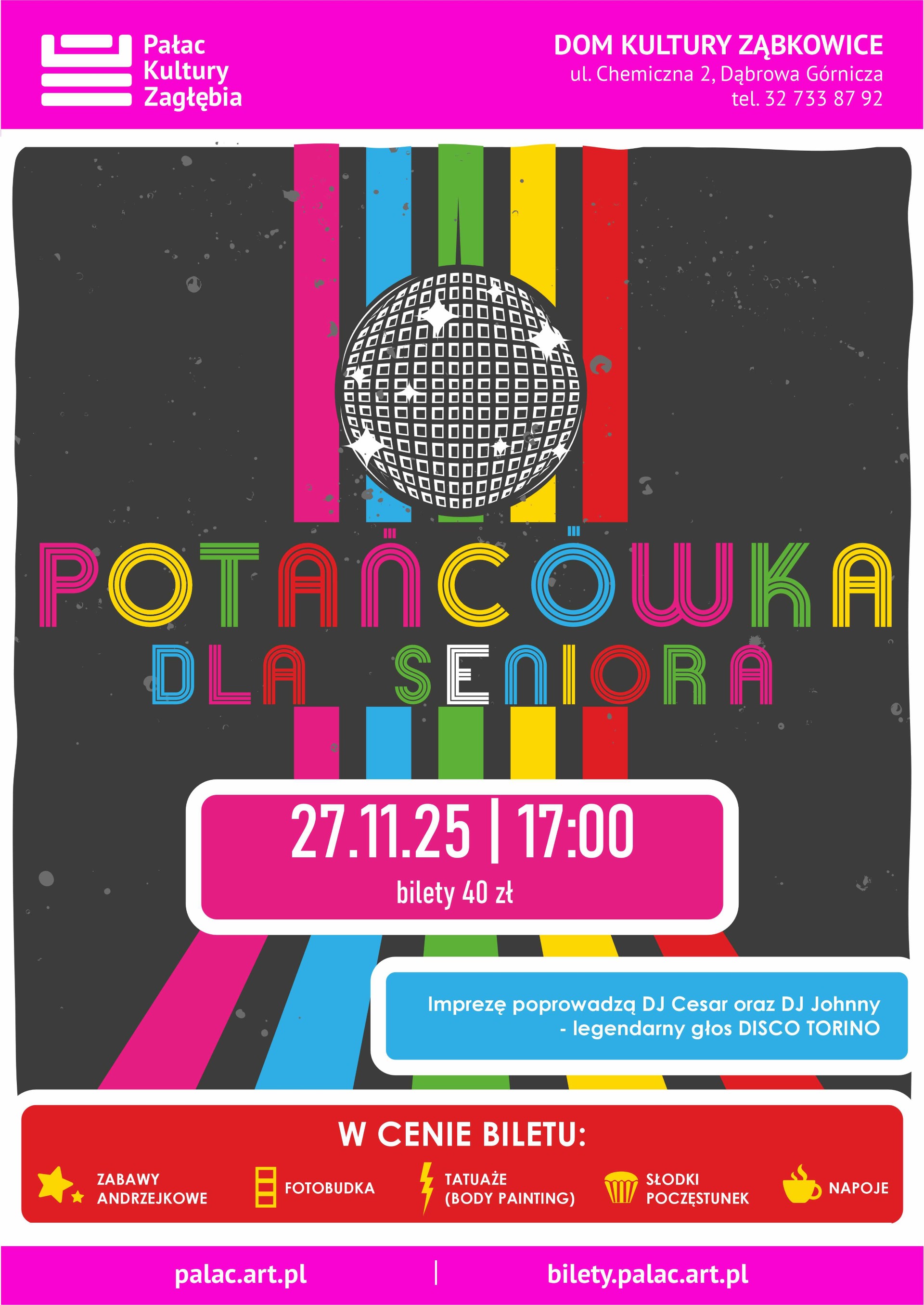 27 listopada o 17:00 zapraszamy wszystkich seniorów na kolejną z cyklu Potańcówkę dla seniora w Domu Kultury Ząbkowice!